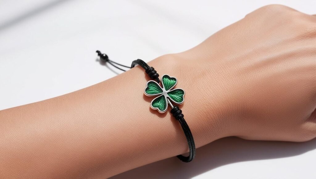 • Papuošalas: Be simbolinės reikšmės, keturlapio dobilo apyrankė gali būti stilingas ir madingas aksesuaras.