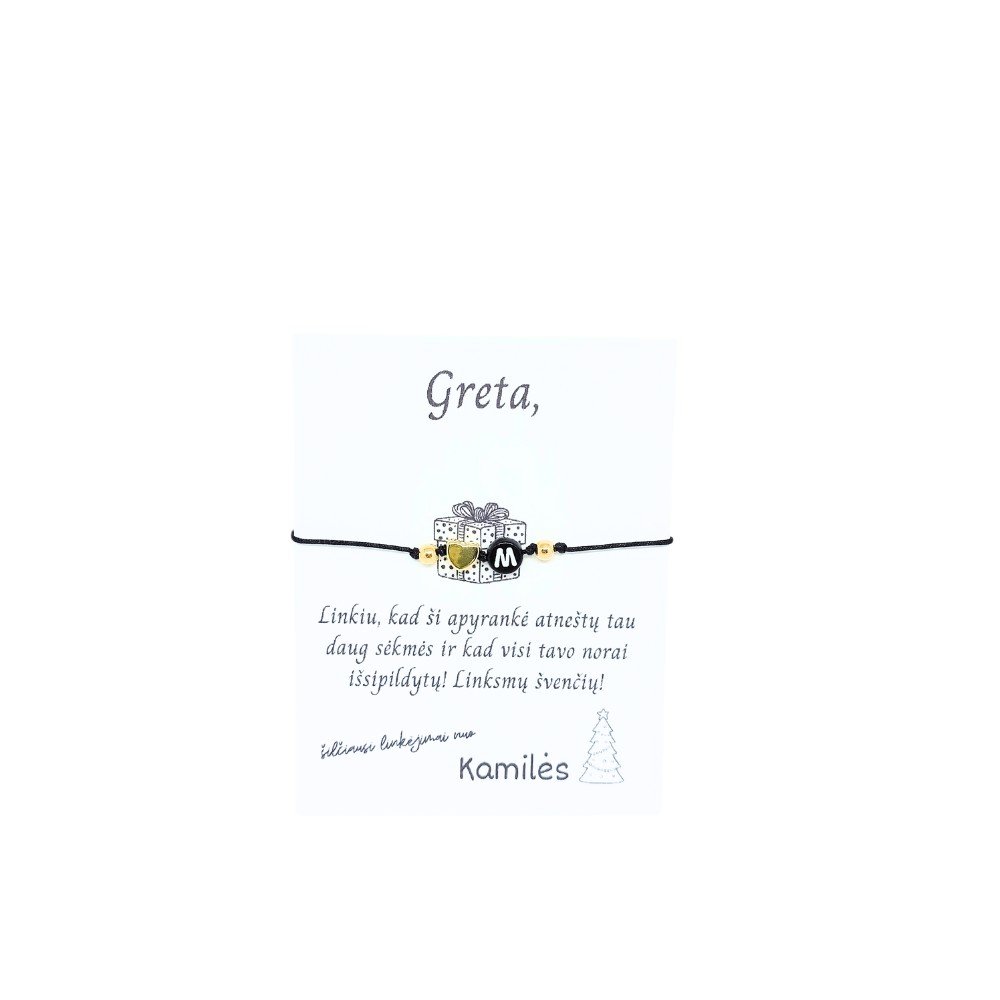 Sėkmės apyrankė su vardo raide ir aukso spalvos širdimi